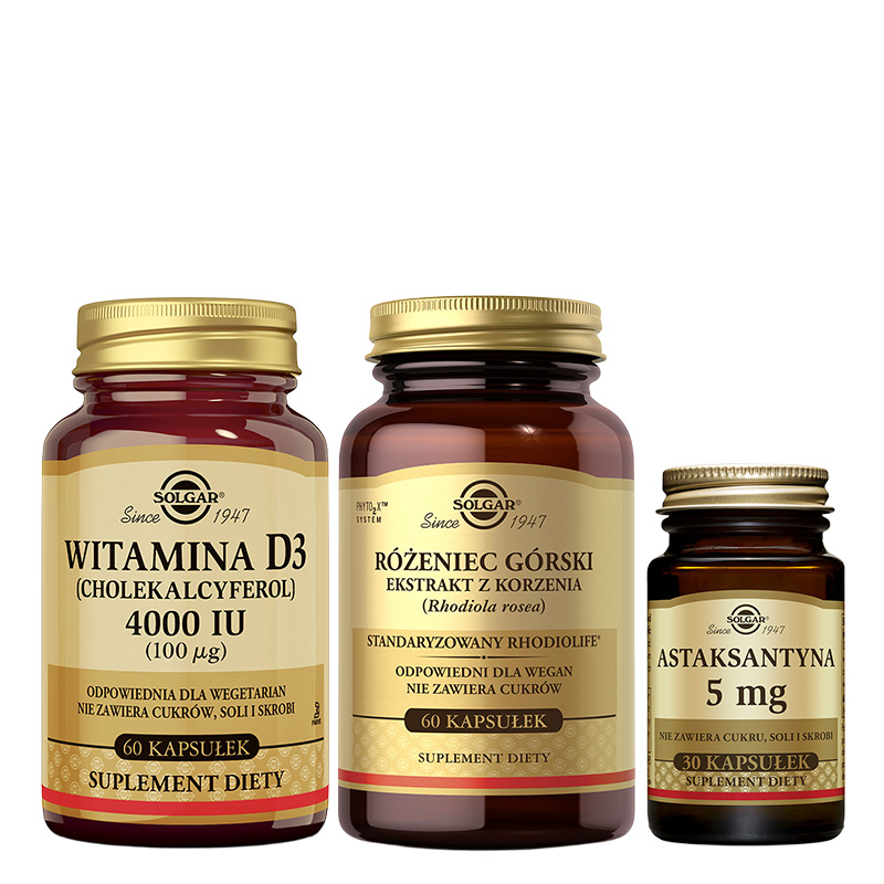 Suplement diety przeznaczony dla dorosłych. Zawiera astaksantynę, naturalny karotenoid pochodzący z alg Haematococcus pluvialis, rozpuszczoną w oleju słonecznikowym.