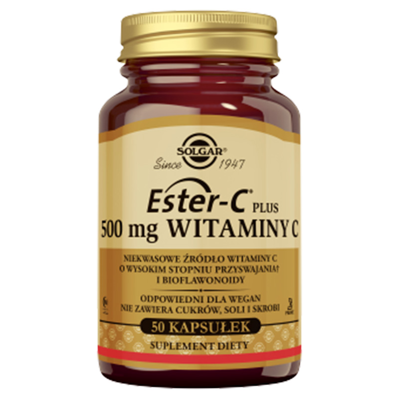 Produkt zawiera 500 mg witaminy C w opatentowanej postaci Ester-C®, która wyróżnia się neutralnym pH (6,7) oraz wysoką biodostępnością. Składnik ten wspiera produkcję kolagenu, co jest istotne dla zachowania zdrowej skóry, chrząstek i kości. Formuła została wzbogacona o bioflawonoidy cytrusowe, acerolę, dziką różę oraz rutynę, dzięki czemu może mieć pozytywny wpływ na odporność organizmu.