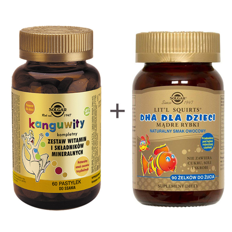 Kanguwity (smak owoce tropikalne) Kompletny zestaw witamin i składników mineralnychSuplement diety przeznaczony dla dzieci od 3. roku życia. Rekomendowany również dla dorosłych, którzy mają problemy z połykaniem, lub po prostu wolą formę pastylek do ssania.