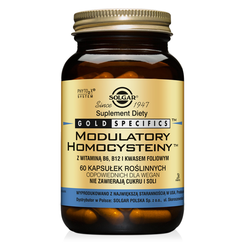 Modulatory homocysteiny z zawartością witaminą B6, B12 i kwasem foliowym jest pierwszym preparatem na naszym rynku z unikalnej serii marki Solgar Gold Specific. Opracowane zostały na podstawie najbardziej innowacyjnych składnikach wykazujących skuteczne oddziaływanie. Produkt ten jest dodatkowym elementem w programie ochronnym, który ma na celu utrzymanie normalnego poziomu homocysteiny.