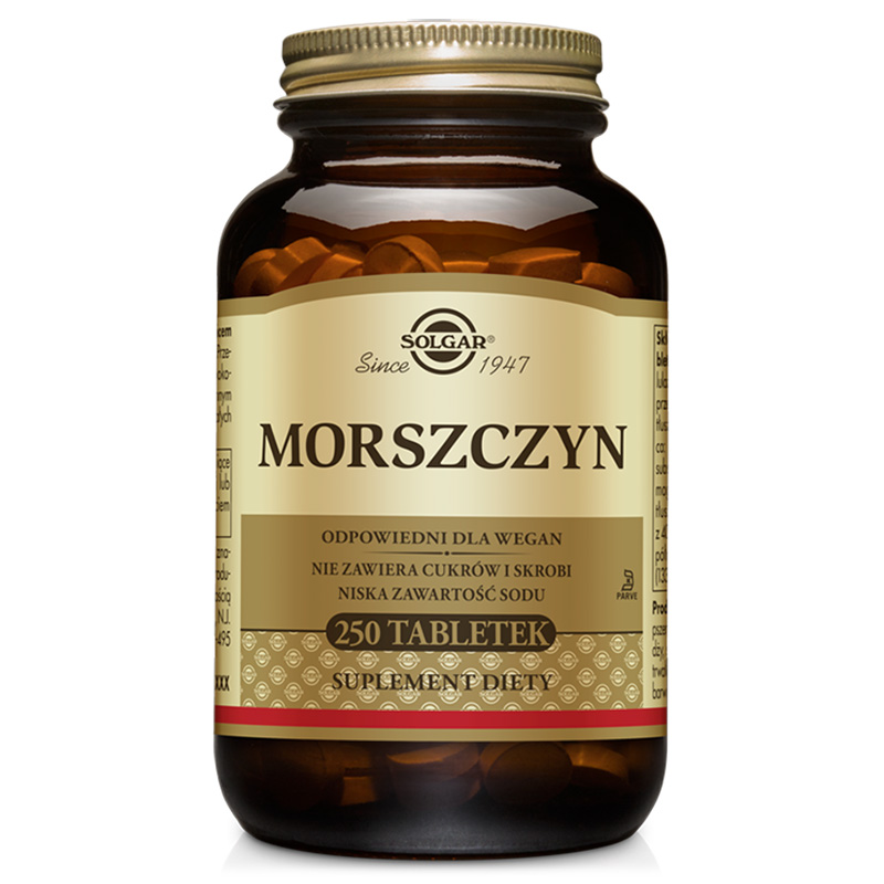 Morszczyn. Ascophyllum nodosum to wodorost stanowiący źródło jodu. W codziennej diecie jod znajduje się w takich produktach jak ryby morskie, sól, mięso, nabiał. Suplement polecany jest dla dorosłych, w tym wegetarian, wegan oraz osób, które muszą wyelimonowac lub zmniejszyć spożycie wymienionych grup żywności.