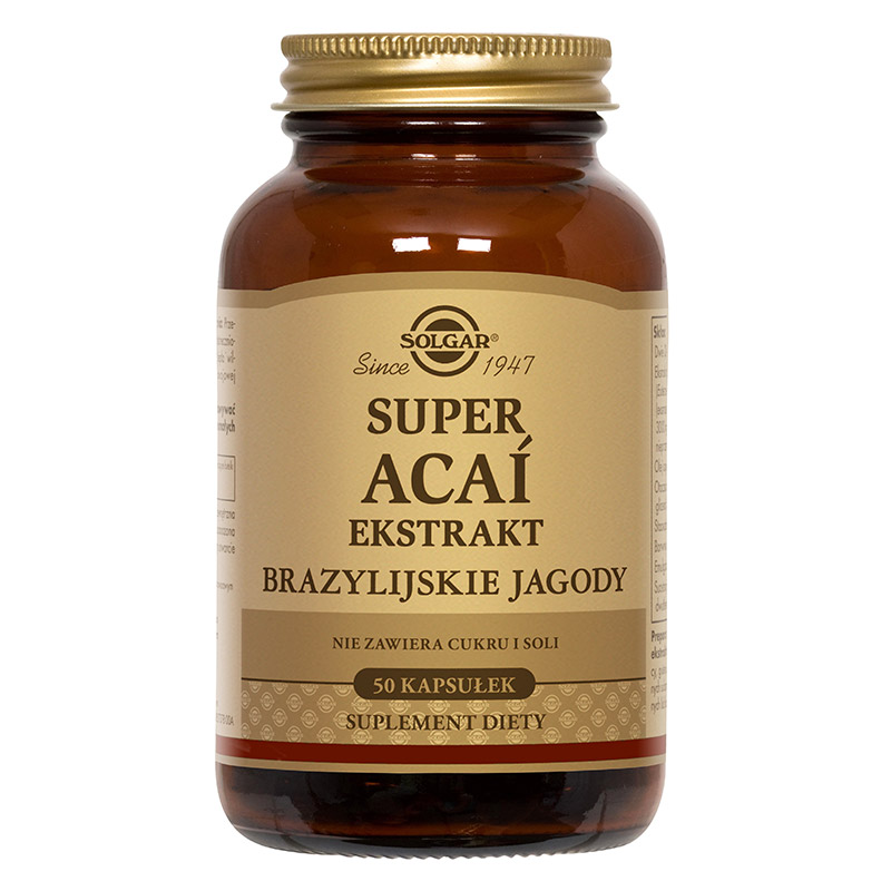 Super Acai Ekstrakt z brazylijskiej jagody stanowi świeży, standaryzowany ekstrakt. Owoce Acai stanowią źródło bardzo silnych antyoksydantów, dzięki czemu neutralizują szkodliwe działanie wolnych rodników. Wykazuje znacznie silniejsze właściwości antyrodnikowe niż witaminy A, C i E czy czerwone winogrona. Wykazują bardzo duży potencjał prozdrowotny.