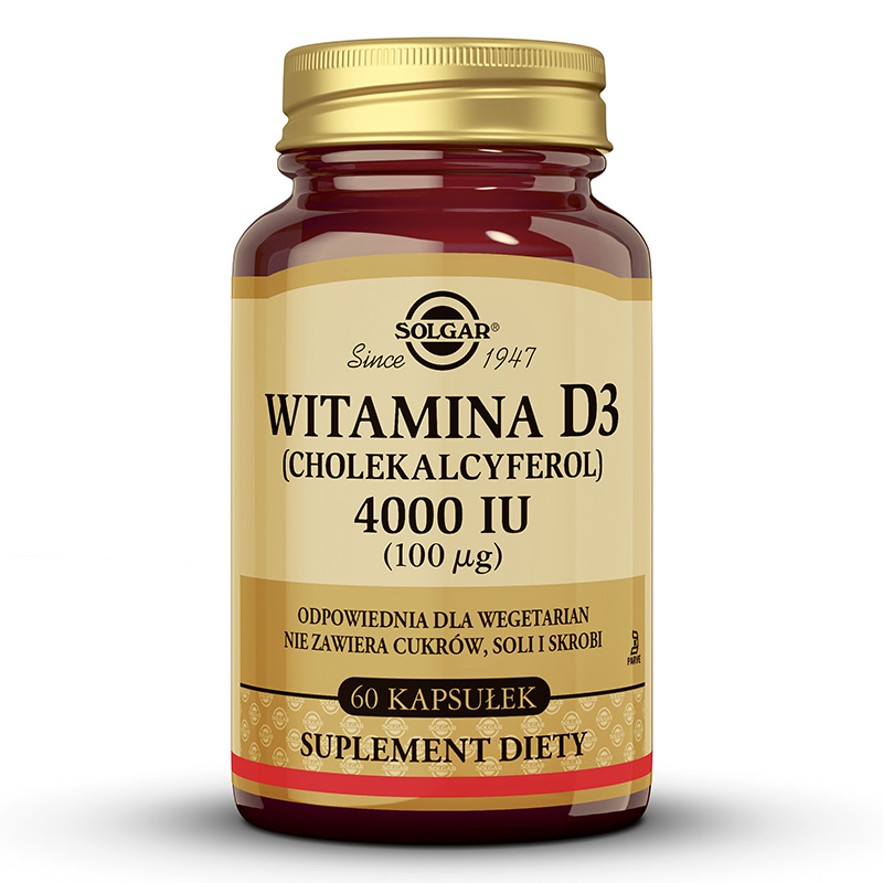 Każda kapsułka Solgar Witamina D3 4000 IU dostarcza 100 µg witaminy D3 w formie cholekalcyferolu, który jest dobrze przyswajalny przez organizm. Pochodzi ona z lanoliny – naturalnego wosku uzyskiwanego z wełny owczej. Proces ten jest bezpieczny dla zwierząt i sprawia, że produkt jest odpowiedni dla wegetarian.
