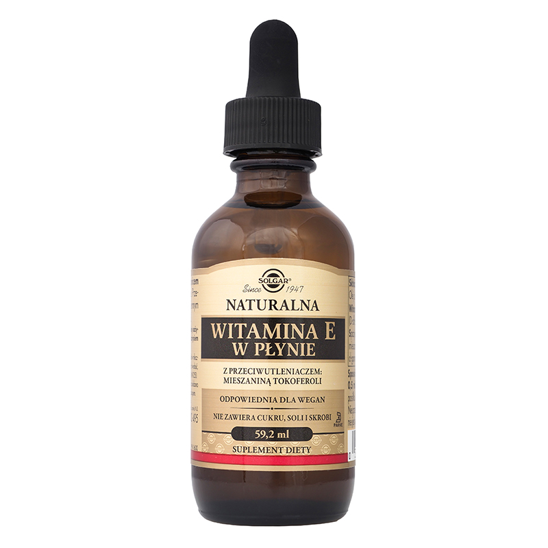 Witamina E w płynie naturalna 101mg z przeciwulteniaczem, mieszaniną tokoferoli czyli naturalna witamina E z dodatkowa mieszanką tokoferoli (D-beta, D-delta, D-alfa i D-gamma) oraz wysokiej jakości olej z krokosza. Taka postać i połączenie zapewniają zdecydowanie lepsze przyswajanie oraz działanie w porównanie z postacią syntetyczną witaminy E. Witamina E jest jednym z najskuteczniejszych antyoksydantów, dzięki czemu neutralizuje szkodliwe działanie wolnych rodników i zyskała określenie "witaminy młodości". Witaminę E w płynie można zażywać z kroplomierza lub dodać do napojów lub potraw jak sałatki czy zupy.