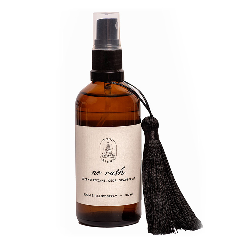 Formuła oparta została na autorskiej kompozycji zapachowej przywodzącej na myśl gorące, leniwe popołudnie. Mgiełka posiada ciepłe nuty drewna, cytrusów oraz róży. No Rush Room And Pillow Spray to zapach przywodzący pozytywne emocje, pozwalający na długie chwile relaksu.
