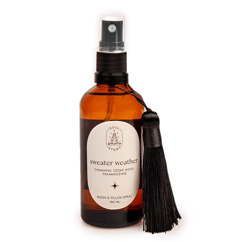 Sweater Weather Room And Pillow Spray pozwala przenieść się do świata jesiennych, odprężających rytuałów we wnętrzu własnego domu.