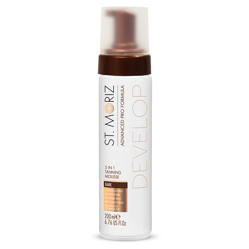 5 in1 Tanning Mousse Dark - Wielofunkcyjny mus samoopalający o przedłużonym działaniu (ciemny). Mus o lekkiej konsystencji dający efekt pięknie opalonej skóry bez widocznych niedoskonałości. Unikalna formuła zawarta w musie głęboko nawilża, rozświetla i wygładza skórę dając przy tym równomierny koloryt z efektem BB. Po aplikacji właściwa opalenizna rozwija się w ciągu kilku godzin, a efekty utrzymują się nawet do 7 dni od zastosowania. Można stosować przy skórze wrażliwej.