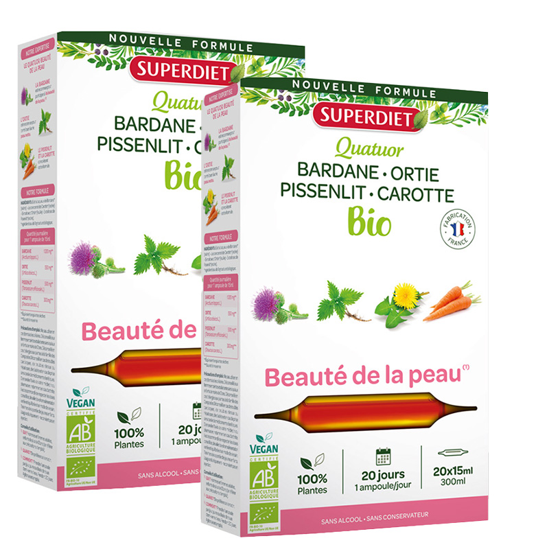 Produkt Bardane Beaute Peau jest odpowiedni dla osób dbających o zrównoważony styl życia i różnorodność diety. Ma wygodną postać ampułek z gotowym do spożycia płynem.