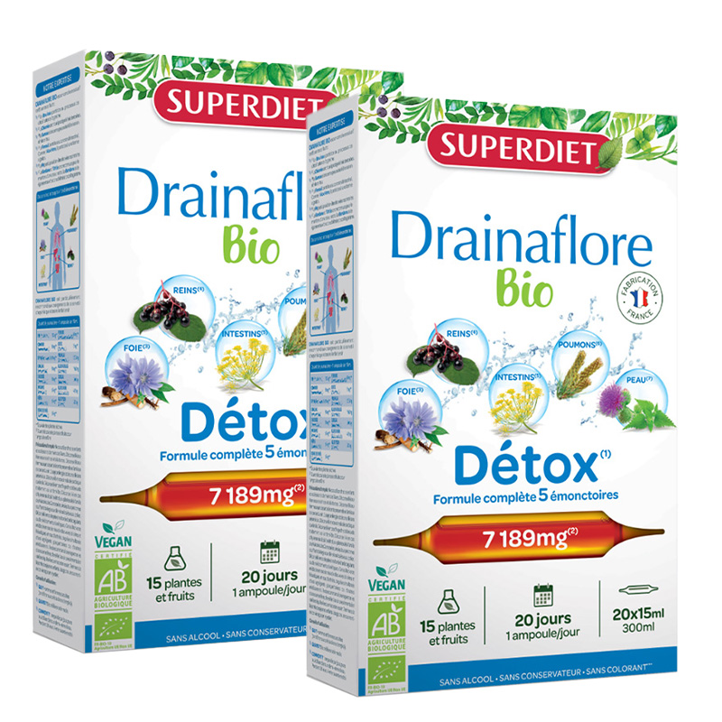 Starannie dobrane składniki pochodzenia naturalnego mogą stanowić urozmaicenie diety. Produkt Drainaflore Bio Detox jest rekomendowany jako element zbilansowanego stylu życia i różnorodnej diety. Ma wygodną postać ampułek z gotowym do spożycia płynem.
