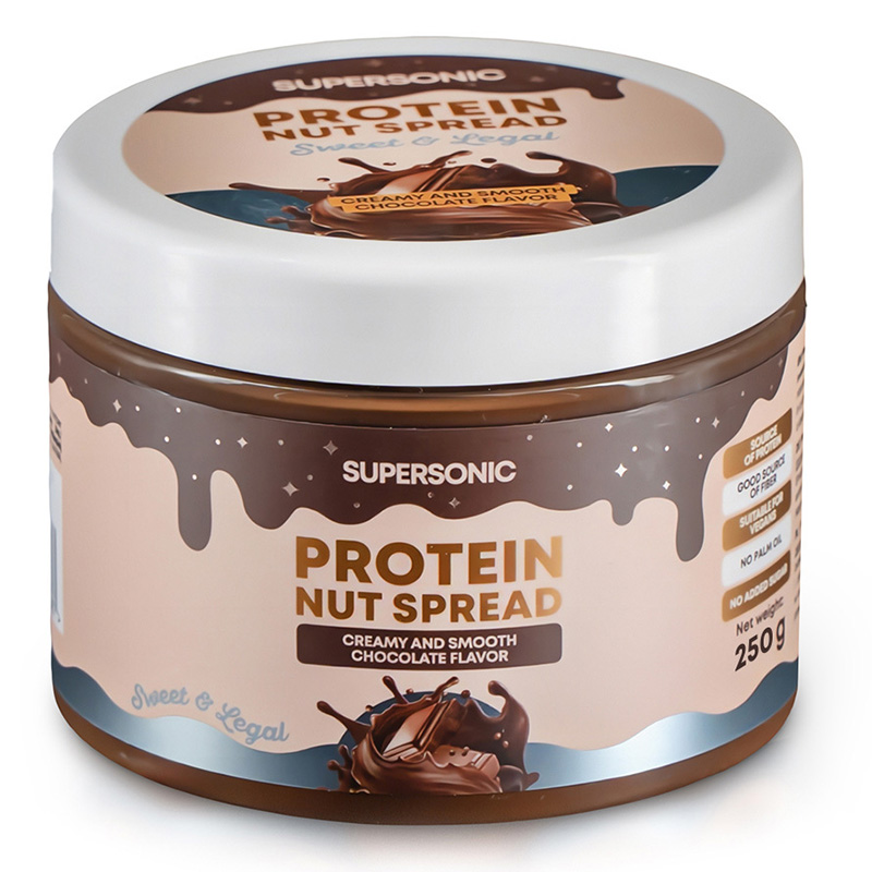 Supersonic Protein Nut Spread doskonale sprawdza się jako uzupełnienie codziennych posiłków, smoothie czy kanapek. Trafnie komponuje się także z owocami, tworząc smaczną i pożywną przekąskę. Dostarcza nie tylko przyjemności smakowej, ale również istotnych składników odżywczych. Produkt jest starannym połączeniem kremowej konsystencji, obfitości białka oraz intensywnego i wyśmienitego smaku czekolady. Dostępny w kilku wersjach smakowych.