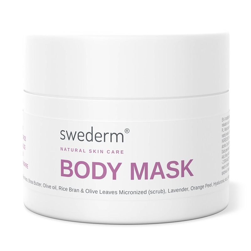 Body Mask - Maska i peeling do ciała. Wielofunkcyjny kosmetyk przeznaczony do pielęgnacji całego ciała. Sprawdzi się przy każdym typie skóry. Zatopione w masce drobinki delikatnie złuszczają martwy naskórek, podczas gdy składniki aktywne intensywnie odżywiają i regenerują skórę. Miąższ z liści aloesu koi i przywraca odpowiedni poziom nawilżenia, masło shea natłuszcza i uelastycznia skórę, a ekstrakt z kwiatów lawendy wykazuje działanie antyseptyczne i przeciwzapalne. Wyciąg ze skórki słodkiej pomarańczy wspomaga detoksykację, wzmacnia ściany naczyń krwionośnych, a także niweluje obrzęki. Z kolei kwas hialuronowy silnie wiąże wilgoć, przywracając skórze komfort. Uzupełnienie całej formuły - olejek z mięty pieprzowej działa odświeżająco, przeciwbólowo i pobudzająco. Dzięki temu przy użyciu maski można stworzyć warunki domowego SPA, pozwalając sobie na chwilę relaksu. Po zastosowaniu tego kosmetyku skóra staje się miękka, wygładzona i promienna.