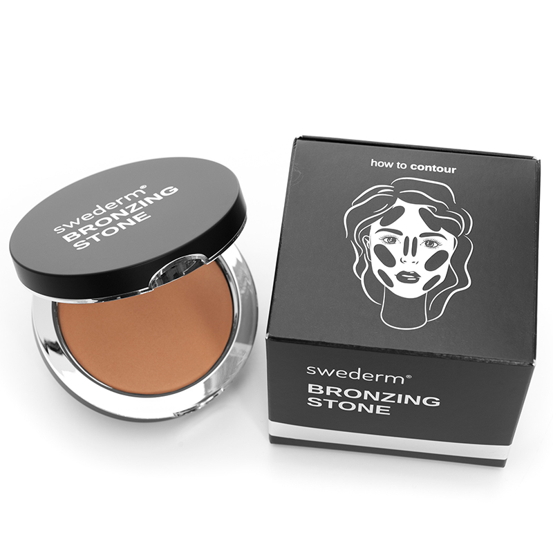 Bronzing Stone - Kamień brązujący. Puder brązujący o wyjątkowej trwałości, dający efekt niezwykle naturalnej, opalonej skóry. Twarz po nałożeniu produktu wygląda bardzo promiennie oraz zdrowo. Preparat posiada lekką formułę, która nie oblepia skóry, tylko pozwala jej oddychać. Odcień opalenizny można stopniować, poprzez kolejne aplikacji bronzera. Kamień brązujący charakteryzuje się dużym napigmentowaniem, dzięki czemu już niewielka ilość pozwoli uzyskać upragniony efekt. Użycie dodatkowo odpowiedniego pędzla pozwoli na profesjonalne wymodelowanie konturów twarzy. Najefektywniej będzie nakładać produkt pod kośćmi policzkowymi, na skrzydełkach nosa, po boku czoła oraz na szyi. Produkt jest zamknięty w przepięknym designerskim opakowaniu, które zostało stworzone z myślą o ekologii. Dodatkowo dołączono do opakowania lusterko. Projekt został nagrodzony na targach Bologna 2015.