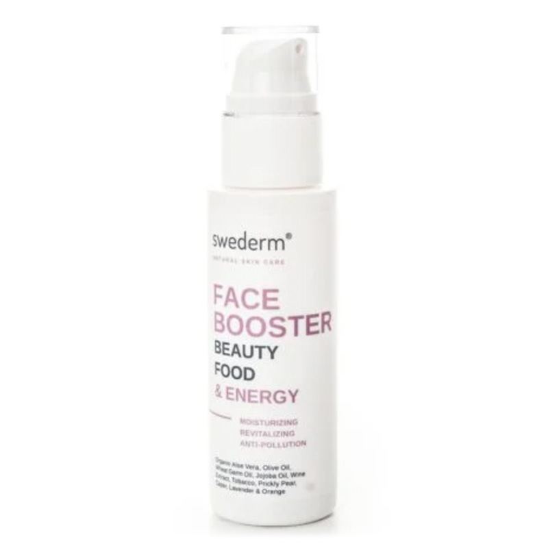 Face Booster - Wzmacniająca emulsja dla każdego rodzaju skóry. - Koncentrat organicznych składników aktywnych o charakterystycznej środziemnomorskiej nucie zapachowej. Konsystencja umożliwia szybkie wchłanianie składników aktywnych i zapewnia głębokie i długotrwałe nawilżenie skóry. Formuła oparta jest na czterech elementach życia (pszenica, oliwa z oliwek, wino i aloes). Produkt łączy głębokie nawilżenie kremu z lekką konsystencją toniku do twarzy, zatrzymując wilgoć w skórze i zapewniając silną ochronę przed czynnikami zewnętrznymi, zwłaszcza zanieczyszczeniami atmosferycznymi. Tworzy zupełnie nową kategorię produktów: wzmacniacz energii skóry.