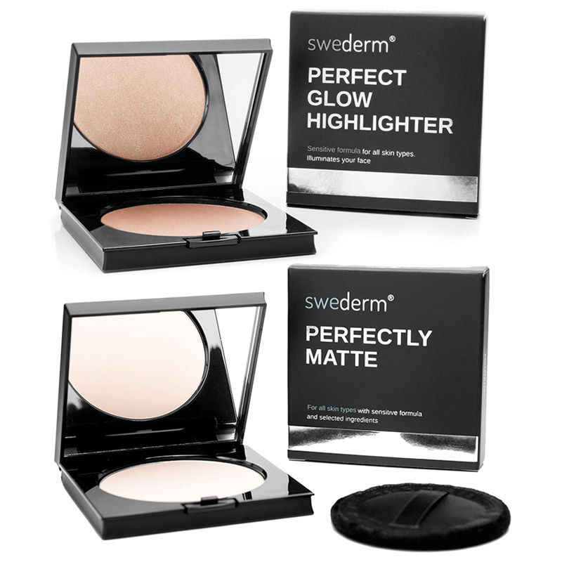 Rozświetlacz i puder matujący znajdują się w estetycznym opakowaniu. Rozświetlacz subtelnie rozświetla, a puder matuje przez 8 godzin potem trzeba poprawić. Polecam oba produkty.