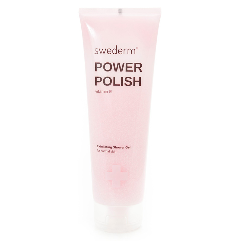 Power Polish - Złuszczający żel pod prysznic z kwasem glikolowym (AHA), witaminą E, B5, papainą i ekologicznymi peelingującymi ziarnami. Produkt do codziennego użytku, delikatnie złuszcza martwe komórki naskórka czyniąc skórę maksymalnie wygładzoną, miękką i jędrną. W składzie zawarto kwas glikolowy oraz ziarna złuszczające z miazgi drzew (biodegradowalne), które oprócz eksfoliacji zapewniają stymulację syntezy kolagenu, co przekłada się na poprawę elastyczności. Efekt wzmacnia papaina oraz kwas PHA. Za nawilżenie odpowiada gliceryna oraz kompleks składników NMF, jak również witamina E i B5. Skóra po użyciu staje się niebywale miękka, promienna i wygładzona.