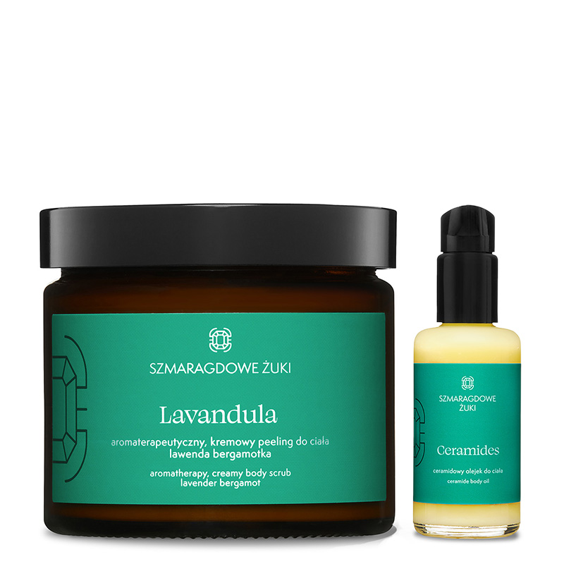 Lavandula Aromaterapeutyczny kremowy peeling – lawenda bergamotkaFioletowa glinka kaolinowa, napar z lnu, olej ze słonecznika, moreli i lnu, witamina E, olejek eteryczny pomarańczowy, bergamotowy, lawendowy.