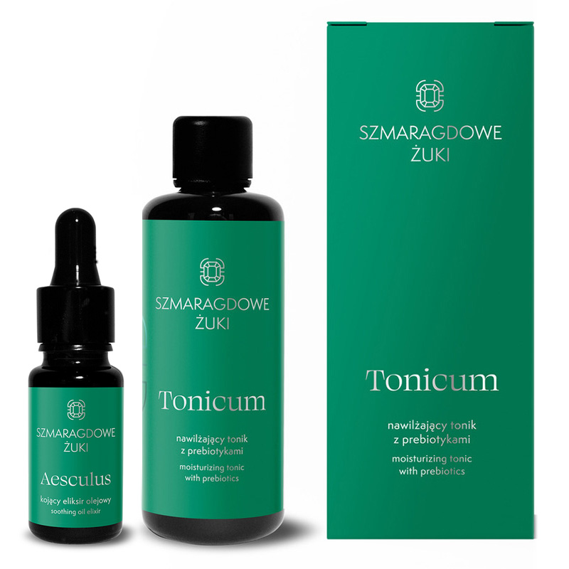 Tonicum Nawilżający tonik z prebiotykamiNawilżający tonik przeznaczony dla każdego typu skóry. Preparat zapewnia nawilżenie i ukojenie, a dzięki zawartości prebiotyków takich jak inulina i fruktoza wspiera równowagę mikrobiomu naskórka.