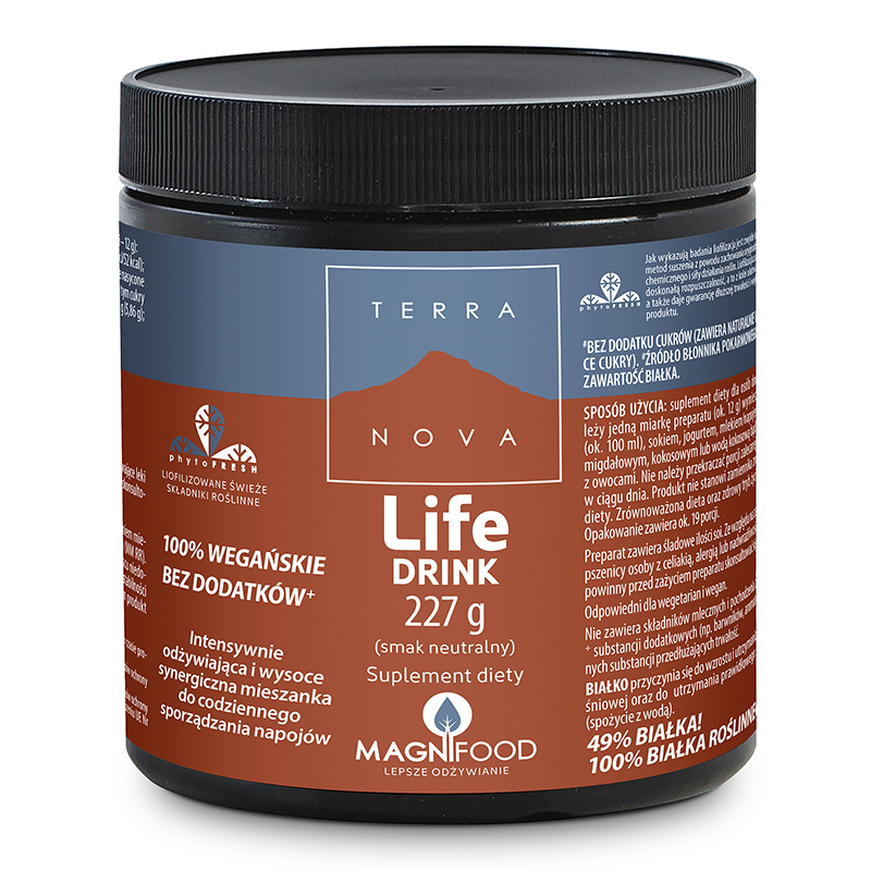 Ponadto w kompozycji znajduje się wegetariańska mieszanka kwasów Omega 3-6-9, bakterie probiotyczne oraz enzymy trawienne. W składzie suplementu nie ma substancji dodatkowych ani składników pochodzenia zwierzęcego, dzięki czemu jest odpowiedni dla wegan i wegetarian.