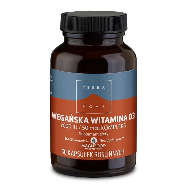 W suplemencie marki Terranova wykorzystano wegański cholekalcyferol z porostów. Unikalny kompleks MagniFood to połączenie składników pochodzenia roślinnego i fitonutrientów do stworzenia którego wykorzystuje się naturalne składniki jak zioła, owoce i warzywa. Poprawiają one działanie, biodostępność i stabilność witaminy D, zwiększają jej aktywność oraz chronią przed utlenianiem.