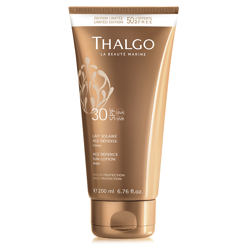 Age Defence Sun Lotion SPF 30 zapewnia wysoką tolerancję, ochronę i jednocześnie słoneczną opaleniznę przy zachowaniu zdrowej i młodej skóry. Kompleks Sun'Ytol® pozyskany z alg czerwonych zapewnia pełną ochronę przeciwsłoneczną zarówno dla promieniowania UVA, jak i UVB.