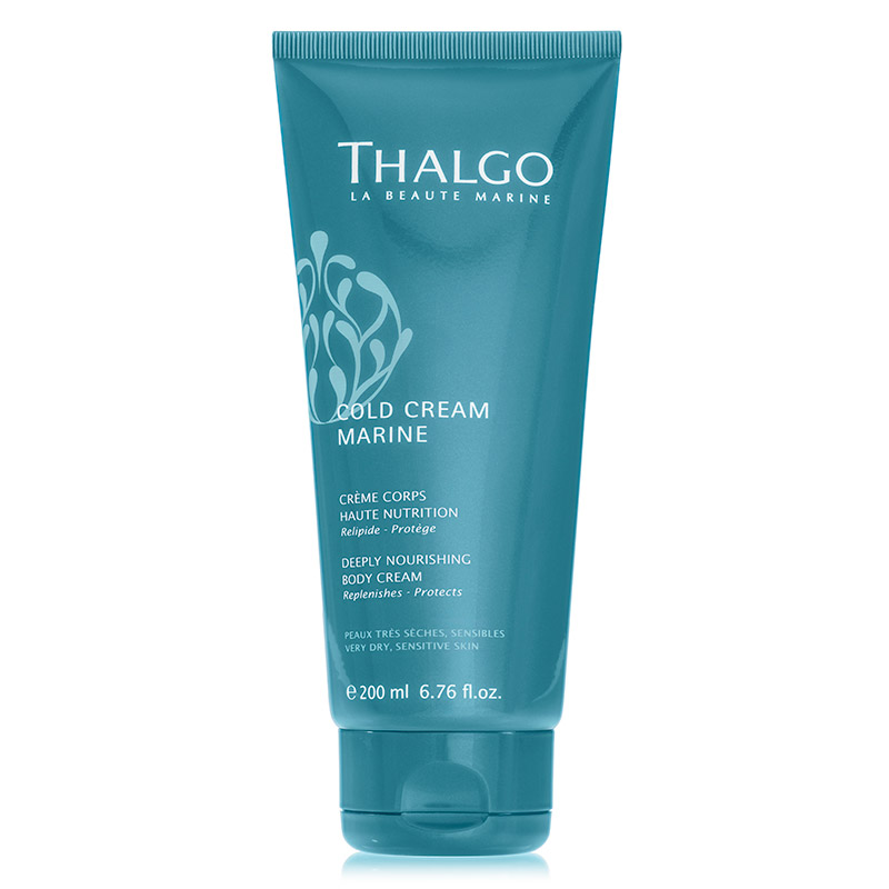 Deeply Nourishing Body Cream - Ultra odżywczy krem do ciała. Rewelacyjny produkt dedykowany do intensywnej pielęgnacji skóry wrażliwej i bardzo suchej. Dzięki dużemu stężeniu kompleksu Cold Cream Marine, który posiada unikalną recepturę zawierającą olej z mikro-alg stanowiących bogactwo kwasów Omega-3, dzięki czemu skóra zostaje silnie odżywiona i natychmiastowo zregenerowana. Dodatkowo ekstrakt z białego łubinu pobudza syntezę włókien kolagenowych, dzięki czemu skóra staje się zdecydowanie bardziej napięta oraz wygładzona. Zwiększona też zostaje naturalna synteza lipidów skóry. Ponadto takie składniki jak masło kakaowe, olejek z dzikiej róży oraz masło cupuacu wykazują efektywne działanie regenerujące i natłuszczające skórę, dodatkowo opóźniają procesy starzenia. Po zastosowaniu kremu skóra zyskuje uczucie komfortu, staje się napięta i elastyczna oraz rewelacyjnie nawilżona i odżywiona.