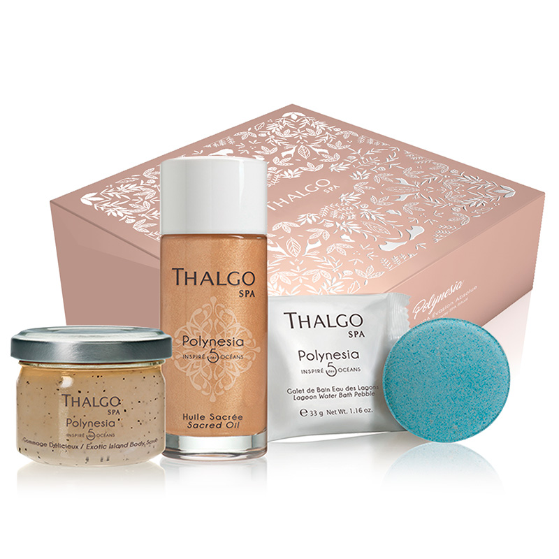 Składowa Thalgo Lagoon Water Bath Pastylki do kąpieli, odprężają i relaksują występuje w zestawie Polynesia Discovery Kit 2018 w zmienionej objętości.