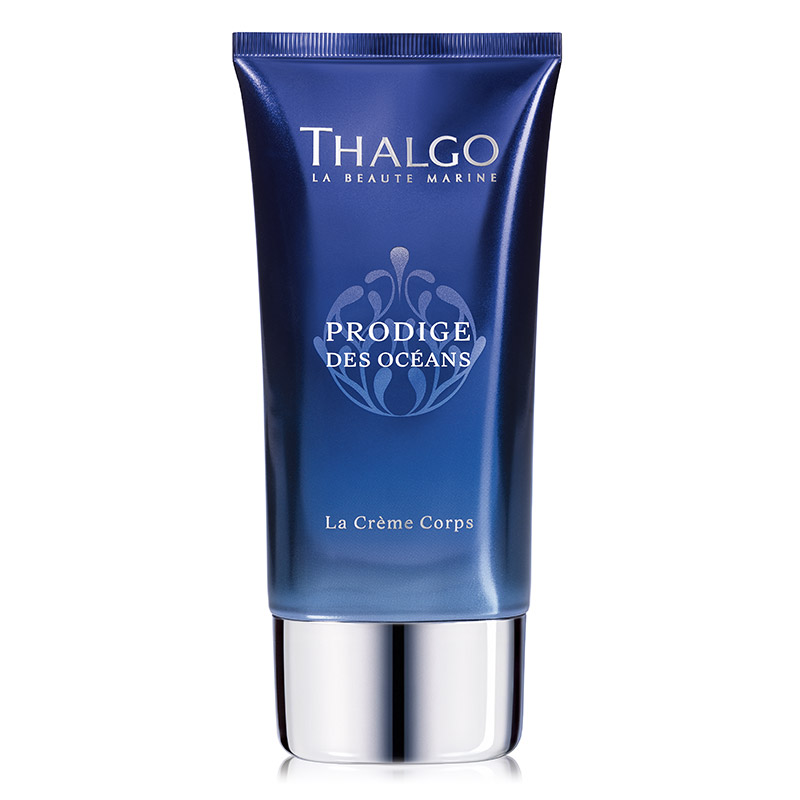 Prodige Des Oceans Body Cream - Delikatny krem-balsam do ciała dedykowana dla każdego typu skóry w celu poprawy jej kondycji oraz przywrócenia odpowiedniego odżywienia. Zawarty w kompozycji preparatu opatentowany przez markę Thalgo, niezwykle ekskluzywny kompleks Regenerative Marine Intelligence® stanowi połączenie 63 biomimetycznych składników morskiego pochodzenia Dzięki temu wspomaga regenerację i głębokie odżywienie skóry, która odzyskuje młodzieńczy wygląd. Olej z mikro-algi Nannochloropsis to bogactwo kwasy tłuszczowych Omega 3 i 6, które ujędrniają i odżywiają skórę, ponadto w połączeniu z masłem shea zdecydowanie przyspieszają regenerację podrażnień. Chlorella odpowiada za detoksykację komórek, spowalnia też proces starzenia i zwiększa elastyczność skóry. Łubin wzmacnia barierę ochronną skóry, a biały lotos działa nawiląająco oraz antyoksydacyjnie. Dzięki pięknemu pudrowo-kwiatowemu zapachowi pielęgnacja skóry staje się ekskluzywnym zabiegiem, który rewelacyjnie wpływa na kondycję skóry-staje się ona spektakularnie wygładzona, nawilżona i odmłodzona