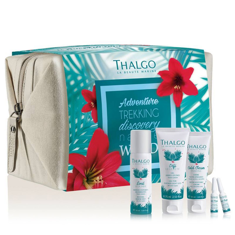 Składowa Thalgo Gel For Feather Light Legs Relaksujący żel na opuchnięte nogi występuje w zestawie The Adventurer w zmienionej objętości.