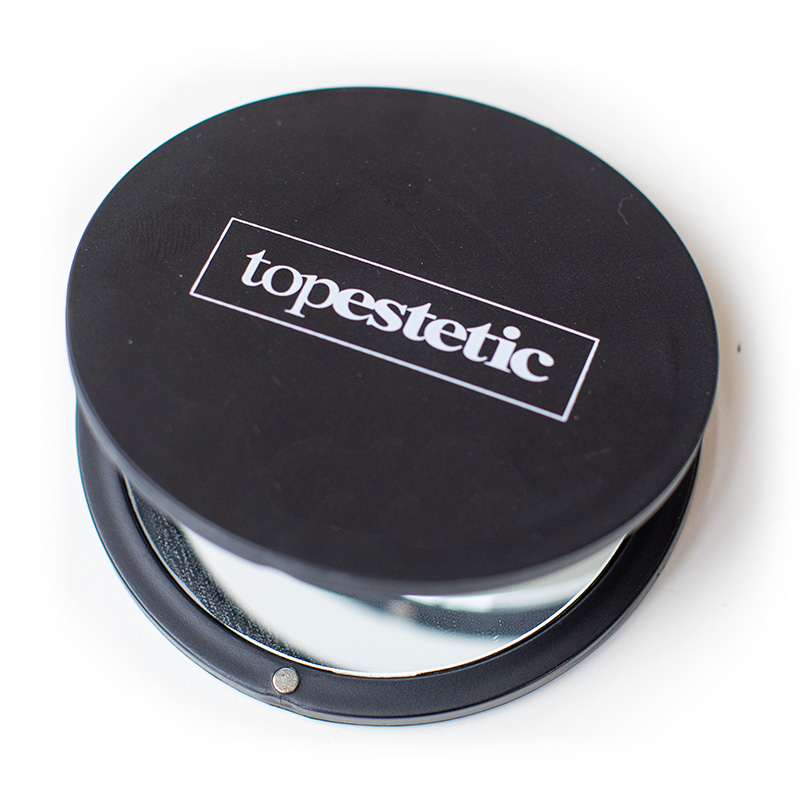 Niewielkie, okrągłe lusterko o średnicy 9,5 cm. Idealnie sprawdzi się w podróży lub jako podręczne lusterko ułatwiające poprawę makijażu w ciągu dnia. Dzięki magnetycznemu zamknięciu oraz trwałemu opakowaniu wykonanemu z plastiku produkt jest dobrze zabezpieczony przed uszkodzeniem. Lusterko posiada dwie strony, jedną odbijającą obraz rzeczywisty oraz drugą powiększającą. Eleganckie opakowanie jest w kolorze czarnym a na jego zewnętrznej stronie widnieje logo firmy Topestetic.