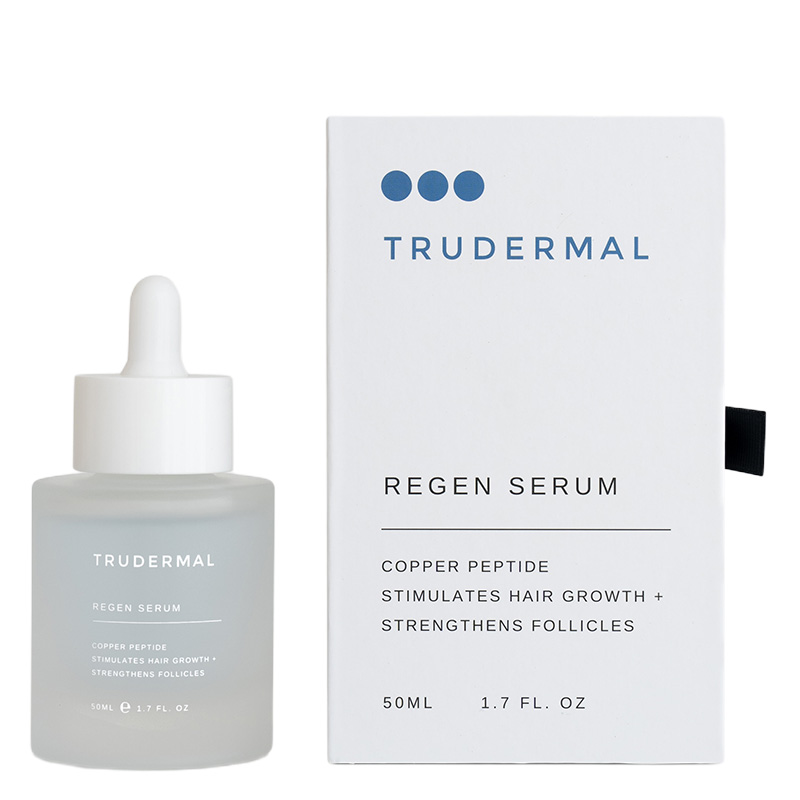 Dzięki Trudermal Regen Hair Growth Serum mieszki włosowe są wzmocnione, skóra głowy odżywiona i dotleniona, a wypadanie włosów ograniczone.