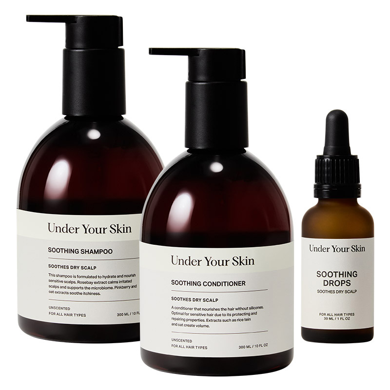 Szampon Under Your Skin Soothing Shampoo pomaga utrzymać naturalną równowagę skóry głowy, redukując łupież, suchość i podrażnienia.