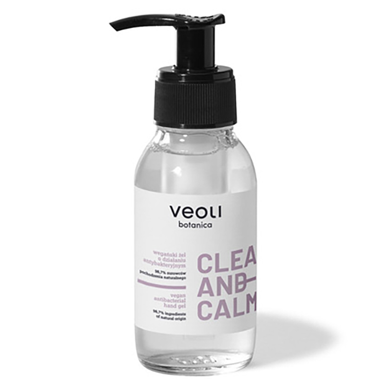 Clean and Calm - Wegański żel do ochrony i pielęgnacji dłoni o działaniu antybakteryjnym. Wegański żel do pięlęgnacji skóry dłoni o działaniu silnie antybakteryjnym zamknięty w farmaceutycznym, szklanym opakowaniu. Zawiera 70% alkoholu, który otrzymany został na drodze procesu naturalnej fermentacji. Origanol z olejku z drzewa herbacianego posiada właściwości chroniące nawet bardzo wrażliwą skórę. Zawarty w żelu d - panthenol koi silnie regeneruje, łagodzi i nawilża naskórek.