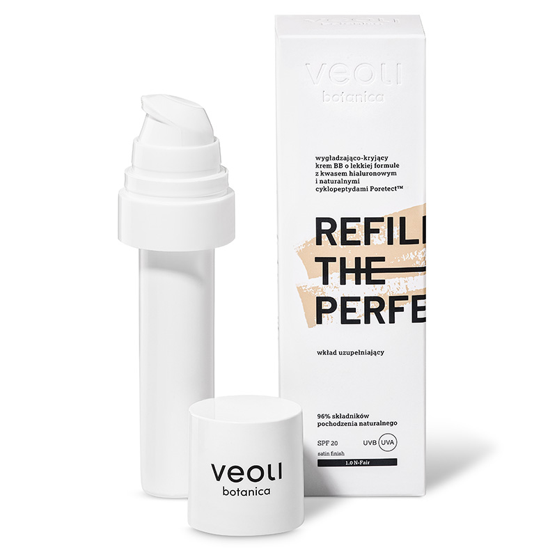 Drop of Perfection Fair - Refill Wygładzająco-kryjący krem BB o lekkiej formule z kwasem hialuronowym - uzupełnienie. Refill powstał aby ograniczyć ilośc odpadów produkowanych przez zużyte opakowania, jego waga jest niższa przez co zmniejsza się ślad węglowy podczas transportu.