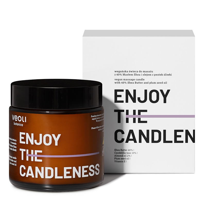 Aromaterapeutyczny masaż ciała świecą Enjoy the Candleness daje uczucie nawilżenia i zmiękczenia skóry, a przy tym relaksuje i poprawia nastrój.