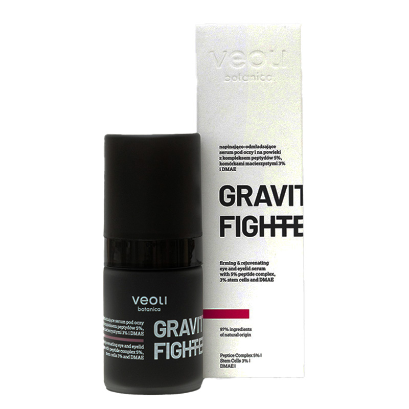 Dzięki regularnemu stosowaniu Gravity Fighter skóra wokół oczu nabiera blasku, poprawia się jej elastyczność i jędrność, a zmarszczki stają się mniej widoczne.