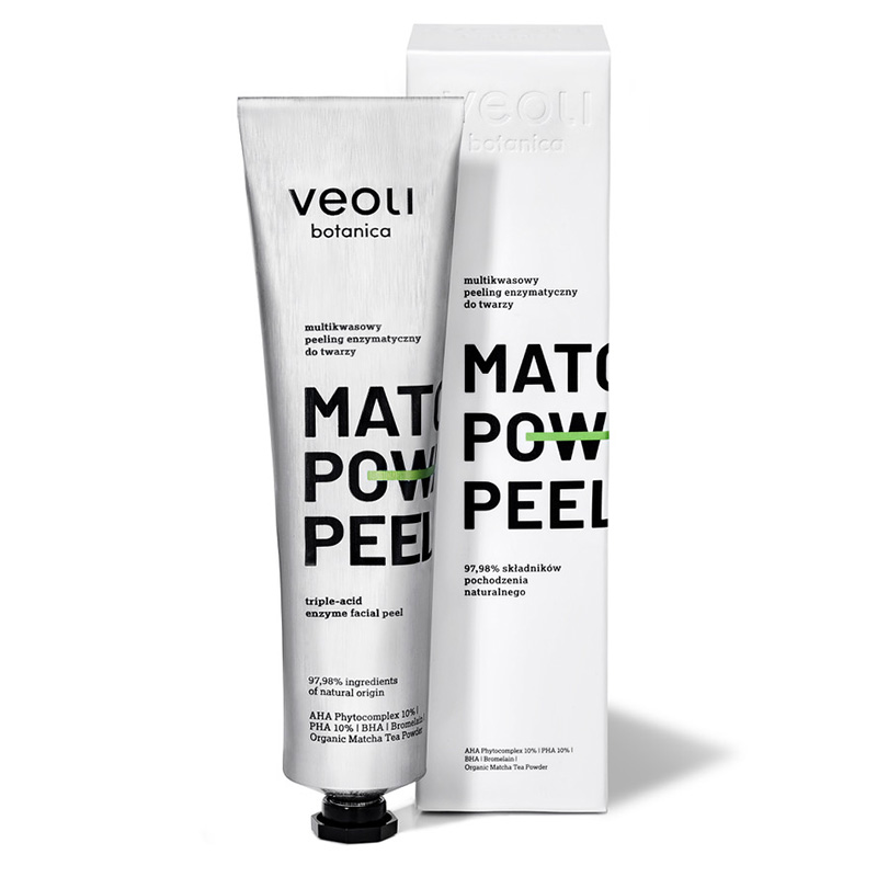 Bromelaina ma działanie złuszczające i rewitalizujące, pozostawiając skórę rozświetloną i promienną, a organiczna matcha pełni rolę antyoksydantu oraz regeneruje skórę.