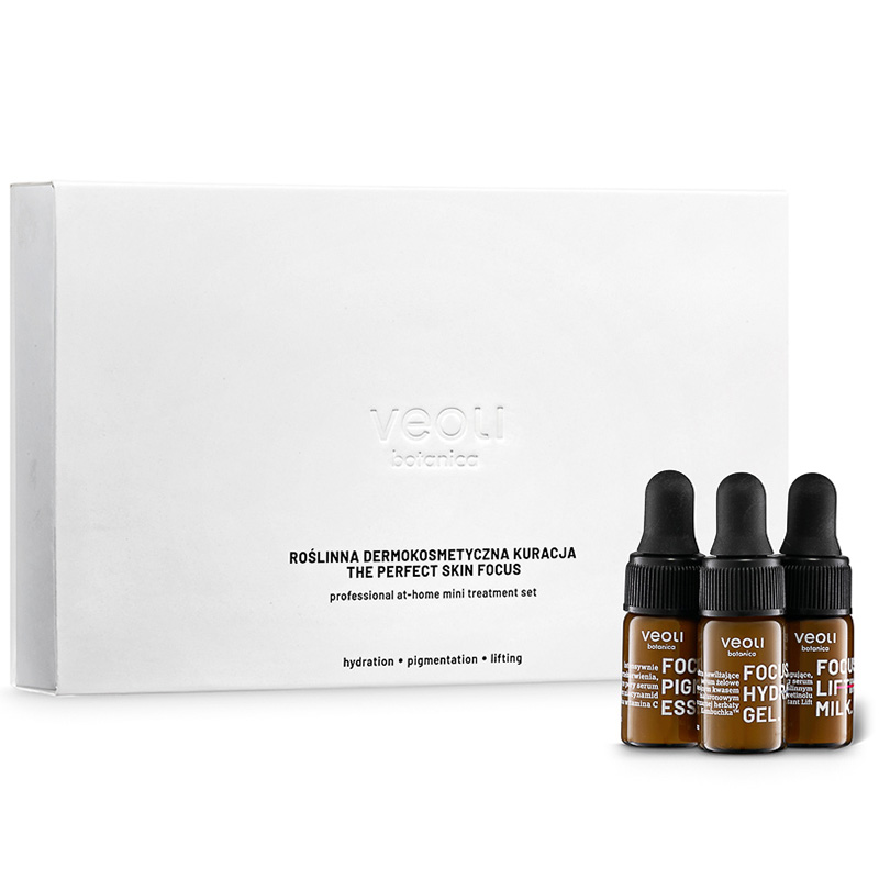 Składowa Veoli Botanica Focus Pigmentation Essence Intensywnie redukujące przebarwienia, zwężające pory serum występuje w zestawie Mini Trio Serum w zmienionej objętości.