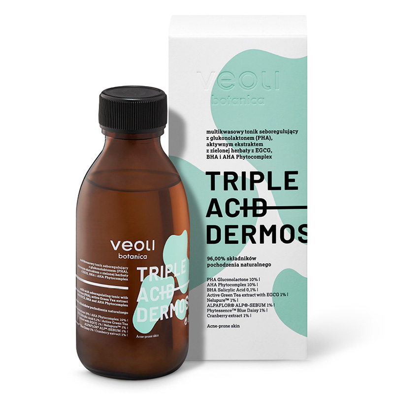 To produkt przeznaczony do pielęgnacji skóry tłustej, mieszanej i trądzikowej. Zawarty w składzie toniku, standaryzowany na obecność EGCG 1% ekstrakt z zielonej herbaty wykazuje silne działanie antybakteryjne, dzięki czemu skutecznie redukuje zmiany trądzikowe. Dodane do toniku alfahydroksykwasy: kwas cytrynowy, kwas mlekowy, kwas winowy oraz betahydroksykwas - kwas salicylowy skutecznie regulują procesy keratynizacji oraz normalizują pracę gruczołów łojowych.