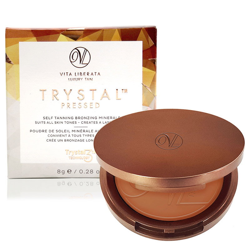 Trystal Pressed Self Tanning Bronzing Minerals - Samoopalający puder mineralny – odcień Bronze. Puder zapewnia dobre krycie niedoskonałości oraz dodatkowo gwarantuje piękny, naturalnie opalony odcień skóry. Jest to kosmetyk doskonały - komfortowe użytkowanie, dzięki kompaktowej formie, mineralna formuła kryjąca oraz doskonały odcień opalenizny. Dodatkowo puder jest niezwykle trwały, dzięki czemu będziesz mogła cieszyć się jego efektem przez wiele godzin. W składzie nie znajdziemy składników olejowych, co sprawia, że jest lekki i idealny na lato. Co więcej, opalenizna którą tworzy podkład jest długotrwała. Poręczna forma produktu sprawia, że można zabrać go wszędzie ze sobą, nawet na wakacje. Idealnie współgra z codziennymi produktami pielęgnującymi oraz innymi kosmetykami do makijażu. Intensywność opalenizny można stopniować poprzez kolejne użycia. Skład produktu jest organiczny. Jest przeznaczony zarówno do twarzy, jak i do ciała. W formule produktu znajdziemy certyfikowany kompleks DHA oraz specjalną technologię, dzięki której kosmetyk nie posiada specyficznego dla samoopalaczy zapachu.