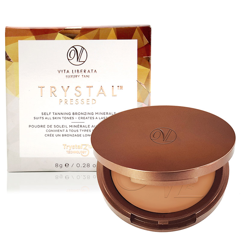 Trystal Pressed Self Tanning Bronzing Minerals - Samoopalający puder mineralny – odcień Sunkissed. Puder zapewnia dobre krycie niedoskonałości oraz dodatkowo gwarantuje piękny, naturalnie opalony odcień skóry. Jest to kosmetyk doskonały - komfortowe użytkowanie, dzięki kompaktowej formie, mineralna formuła kryjąca oraz doskonały odcień opalenizny. Dodatkowo puder jest niezwykle trwały, dzięki czemu będziesz mogła cieszyć się jego efektem przez wiele godzin. W składzie nie znajdziemy składników olejowych, co sprawia, że jest lekki i idealny na lato. Co więcej, opalenizna którą tworzy podkład jest długotrwała. Poręczna forma produktu sprawia, że można zabrać go wszędzie ze sobą, nawet na wakacje. Idealnie współgra z codziennymi produktami pielęgnującymi oraz innymi kosmetykami do makijażu. Intensywność opalenizny można stopniować poprzez kolejne użycia. Skład produktu jest organiczny. Jest przeznaczony zarówno do twarzy, jak i do ciała. W formule produktu znajdziemy certyfikowany kompleks DHA oraz specjalną technologię, dzięki której kosmetyk nie posiada specyficznego dla samoopalaczy zapachu.
