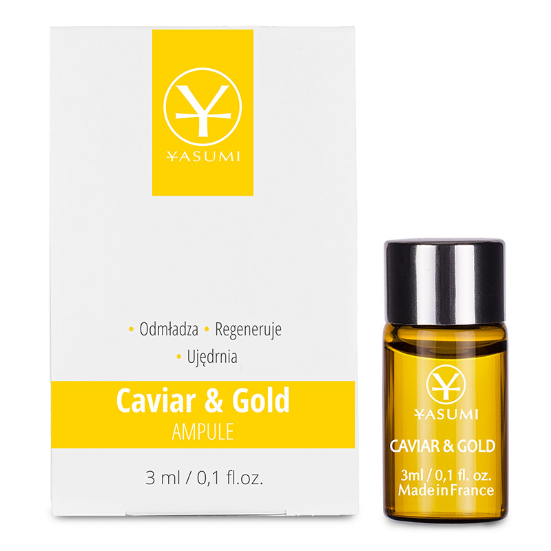 Ampułka ze złotem i kawiorem dedykowana dla cery dojrzałej wymagającej regeneracji i odżywienia.