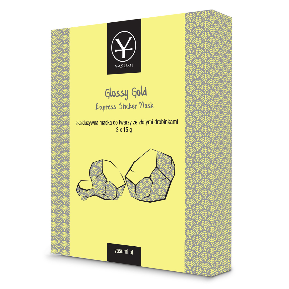 Glossy Gold Express Shaker Mask - Maska do twarzy ze złotymi drobinkami przeznaczona szczególnie do stosowania przed wielkimi wyjściami. Złote drobinki w niej zawarte zapewniają wspaniałe rozświetlenie cery, nadając jej piękny blask. Zawarty w masce sorbitol intensywnie nawilża skórę, niweluje szorstkość naskórka, wygładza go dzięki silnemu wiązaniu wody na jego powierzchni. Ponadto zapobiega ponownemu przesuszeniu skóry. Spektakularne efekty są widoczne na skórze po opalaniu, kiedy piękny koloryt zostaje podkreślony i wzmocniony. Rezultatem zastosowania maski jest widowiskowe rozświetlenie skóry oraz nadanie jej blasku i świeżego, zdrowego wyglądu. Luksusowe maska idealna przed każdym wielkim wydarzeniem.