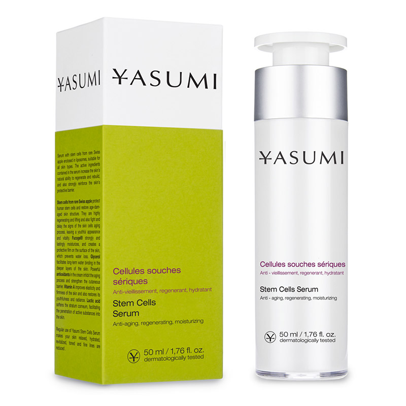 Stem Cells Serum - Serum z komórkami macierzystymi. Serum przeznaczone dla skóry zniszczonej oraz z widocznymi oznakami starzenia. Zawiera komórki macierzyste zamknięte w liposomach, dzięki czemu szybciej i głębiej wnikają w skórę. Mają działanie regenerujące oraz odżywcze, chronią również ludzkie komórki skóry przed szkodliwymi czynnikami. Serum ma działanie liftingujące, regenerujące oraz opóźniające procesy starzeniowe. Kwas mlekowy złuszcza martwe komórki naskórka, co pozwala na lepsze wchłanianie składników aktywnych. Fucogel® dostarcza odpowiedniej dawki nawilżenia oraz chroni przed nadmierną ucieczką z wnętrza skóry. Serum zawiera również glicerynę, która wiąże wodę oraz antyoksydanty zwalczające wolne rodniki, odpowiedzialne za szybsze starzenie się skóry. Witamina A zwiększa jędrność, elastyczność oraz sprawia, że skóra wygląda młodziej i bardziej promiennie. Codzienne stosowanie serum widocznie zmniejsza widoczność zmarszczek.