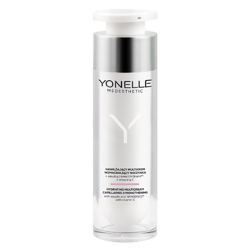 Hydrating Multicream Capillaries Strenghtening - Nawilżający multikrem wzmacniający naczynka dedykowany do cery naczynkowej, z tendencją do trądziku różowatego, a także wrażliwej i skłonnej do zaczerwienień. Idealny kosmetyk do codziennej pielęgnacji, stanowi również świetne ukojenie oraz wzmocnienie i przedłużenie inwazyjnych zabiegów kosmetycznych oraz laserowego zamykania naczynek. Zawarta w składzie eskulina zapobiega powstawaniu pajączków, wspomaga także redukcję tych istniejących. Hesperydyna wzmacnia naczynka krwionośne i usprawnia krążenie krwi, ponadto działając antyoksydacyjnie neutralizuje szkodliwe działanie wolnych rodników. Rutyna uszczelnia naczynia włosowate oraz krwionośne, dlatego działa wspomagająco w przypadku pękających naczynek. Działanie to jest spotęgowane przez heparynopodobny ekstrakt z alg Pelvetia canaliculata. Z kolei NANODYSKI™ z witaminą C wpływają pozytywnie na kondycję skóry naczynkowej, poprawiają i wyrównują także jej koloryt. D-pantenol koi podrażnienia, a biolipidy awokado i pszenicy zapewniają odpowiedni stopień nawilżenia skóry. Rezultatem stosowania kremu jest wzmocnienie naczyń krwionośnych, aksamitnie gładka, wzmocniona skóra o młodszym wyglądzie i pięknym, promiennym kolorycie.