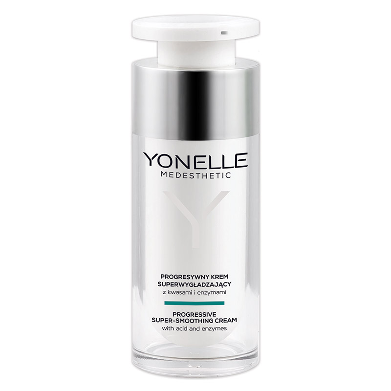 Progressive Super-Smoothing Cream - Progresywny krem superwygładzający idealny dla skóry w każdym wieku. Stanowi wprowadzenie, wzmocnienie oraz uzupełnienie zabiegów EKSFOLIACJI PROGRESYWNEJ™. AHA-amfosystemTM z kwasem glikolowym zapewnia stopniowe uwalnianie kwasów, dzięki czemu wykazuje lepsze działanie przy jednoczesnym zmniejszeniu ryzyka podrażnień, pieczenia czy szczypania skóry. Enzymy z dyni delikatnie złuszczają martwe komórki naskórka sprawiając, że skóra jest rewelacyjnie wygładzona, a cera nabiera zdrowego kolorytu. Kwas szikimowy w połączeniu z kwasem salicylowym działają przeciwzapalnie, seboregulująco, odblokowują ujścia gruczołów łojowych, posiadają silne właściwości przeciwtrądzikowe i antybakteryjne. Takie połączenie składników aktywnych zapewnia wygładzenie, zmiękczenie i nawilżenie skóry. Dodatkowo zabiegi eksfoliacji o wysokich stężeniach kwasów 30% i 50% są lepiej tolerowane przez skórę. Idealny kosmetyk do codziennej pielęgnacji skóry tłustej, mieszanej i dotkniętej problemem trądziku.