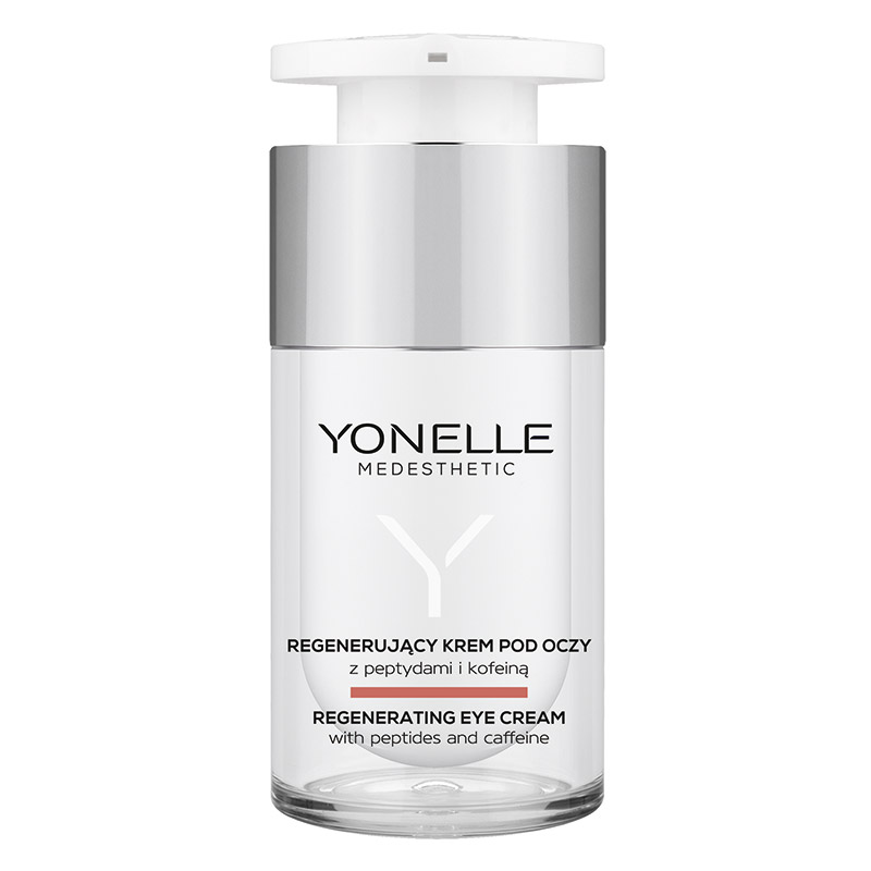 Regenerating Eye Cream - Regenerujący krem pod oczy o działaniu silnie nawilżającym. Zawarte w składzie oligopeptydy i tetrapeptyd-7 działają silnie ujędrniająco oraz przeciwzmarszczkowo redukując widoczne oznaki starzenia się skóry. Heparynopodobny ekstrakt z alg Pelvetia canaliculata wzmacnia naczynka krwionośne i usprawnia krążenie krwi, z kolei kofeina działa drenująco dzięki czemu redukcji ulegają zarówno zasinienie jak i obrzęki pod oczami. Witamina E poprawia ogólny stan skóry, działa antyoksydacyjnie i przeciwstarzeniowo. Z kolei wielkocząsteczkowy kwas hialuronowy, lipidy z awokado i fosfolipidy oraz trehaloza zapewniają odpowiedni stopień nawilżenia skóry. Krem ma lekką konsystencje i bardzo szybko się wchłania. W składzie nie ma dodatków zapachowych. Rezultatem jego stosowania jest rewelacyjne uczucie świeżości, a także zniwelowanie problemu obrzęków i cieni pod oczami oraz redukcja drobnych zmarszczek.