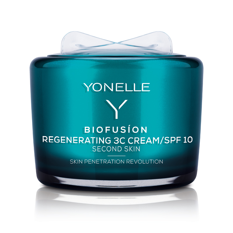 Biofusion Regenerating 3C Cream / SPF 10 - Krem regenerujący. Krem działa na zasadzie biofuzji - wtapia się w skórę i uzupełnia uszkodzenia naskórka, aby zapobiegać podrażnieniom i wnikaniu szkodliwych substancji. Ochrania skórę przed wolnymi rodnikami, promieniowaniem UV, zanieczyszczeniami środowiska. Po nałożeniu odczujemy ukojenie i odnowę zaognionych zmian. Krem posiada właściwości przeciwzmarszczkowe, ujędrniające oraz dzięki witaminie C, rozjaśniające przebarwienia. Receptura kremu zawiera NanodyskiTM, które zwiększają wchłanialność substancji aktywnych aż o 270%. Skóra po użyciu promienieje młodzieńczym blaskiem, staje się ukojona, wygładzona oraz rozświetlona. Krem dla cery suchej, wrażliwej, normalnej.