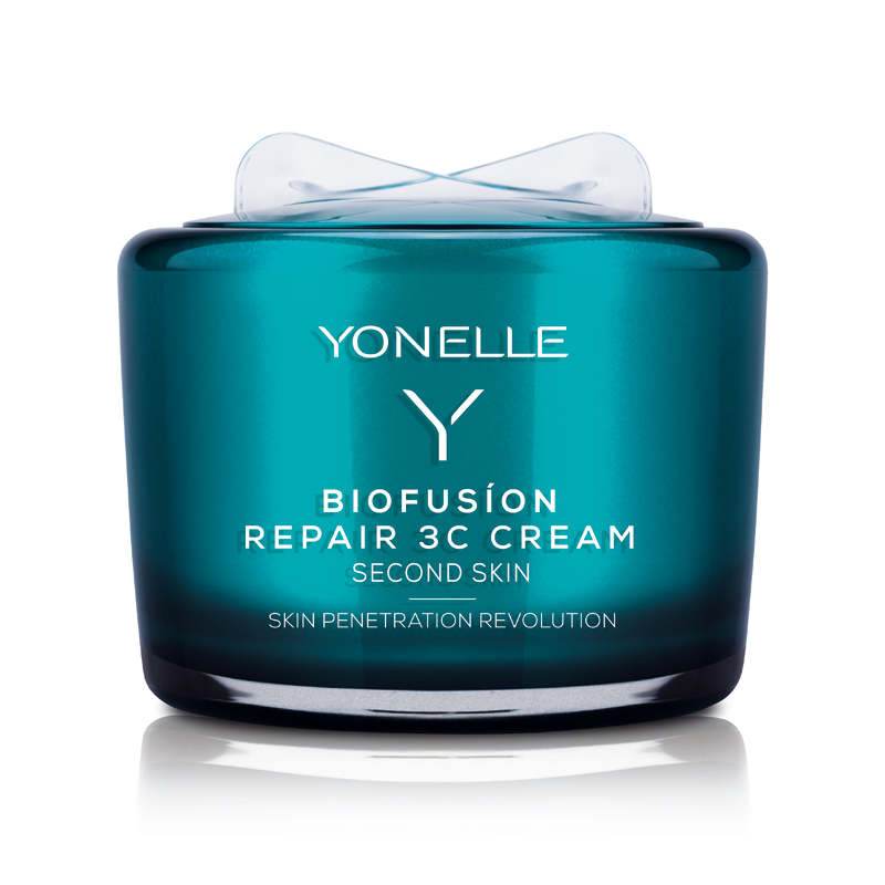 Biofusion Repair 3C Cream - Krem naprawczy 3C. Krem do stosowania na dzień i na noc, przeznaczony do silnej regeneracji skóry. Procesy biofuzji, które zachodzą po nałożeniu kremu, wtapiają produkt w naskórek, uzupełniając ubytki. Dochodzi zmniejszenia podatności na podrażnienia oraz ograniczone staje się wnikanie szkodliwych substancji w głąb skóry. Krem chroni skórę wrażliwą, suchą i skłonną do podrażnień, wzmacniając jej strukturę. Produkt ma właściwości przeciwzmarszczkowe, hamujące procesy starzenia oraz rozjaśniające przebarwienia. Zastosowanie technologii NanodyskówTM, pozwala na zwiększenie wchłanialności substancji aktywnych aż o 270%, co spektakularnie podwyższa skuteczność produktu. Krem pozostawia skórę aksamitnie gładką, miękką oraz wyraźnie odmłodzoną.