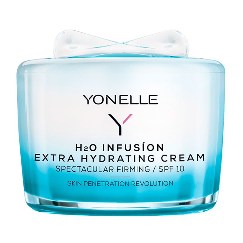 H2O Infusion Extra Hydrating Cream - Ekstranawilżający krem infuzyjny H2O / SPF10. Krem przeznaczony do skóry dojrzałej, o działaniu silnie nawilżającym i ujędrniającym. Produkt stymuluje skórę do syntezy nowego kolagenu oraz chroni ją przed szkodliwym działaniem wolnych rodników i promieniowania UV. Nawilżanie infuzyjne działa regenerująco i odmładzająco na skórę - staje się ona świetlista, elastyczna, a zmarszczki spłycają się. W recepturze kremu zastosowano system wielopoziomowego nawadniania, które nazywane jest "zasadzką na wodę". Nawilżenie naskórka wzrasta nawet o 100% i utrzymuje się niezwykle długo. Skuteczność produktu podwyższa obecność NanodyskówTM, dzięki którym wnikanie substancji aktywnych zwiększa się kilkukrotnie.