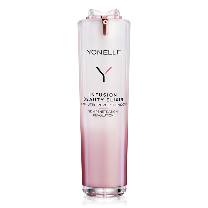 Infusion Beauty Elixir - Eliksir piękności. Luksusowy produkty, przeznaczony dla skóry dojrzałej. Połączenie hydroinfuzji z technologią odnowy komórkowej, w zaledwie 15 minut widocznie poprawia stan naszej skóry. Szorstka, sucha, zmęczona cera, zamienia się w dobrze nawilżony, miękki atłas. Skuteczność produktu przypisujemy nawilżającym składnikom aktywnym: trehalozie, aminokwasom i NMF. Razem tworzą produkt S.O.S dla suchej skóry. Elixir stosować jako maska - nakładać grubszą warstwę na skórę.